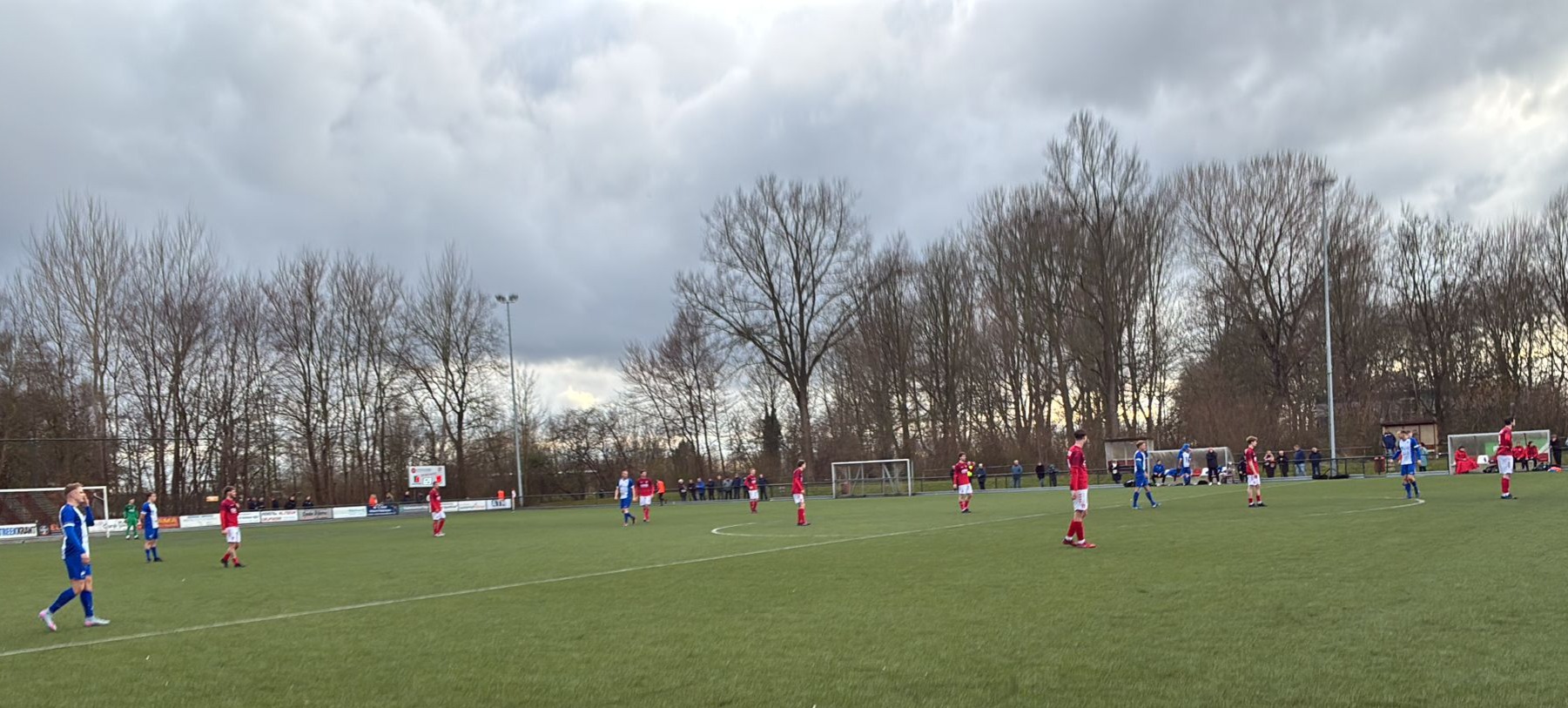 Gescoord wordt er niet meer, en zo gaan we rusten met een 1-0 voorsprong. In de kantine tevredenheid alom. Sommige toeschouwers hebben zoveel vertrouwen in de afloop, dat ze het plekje in de kantine veilig stellen om zangeres Inge straks goed in het oog te hebben.